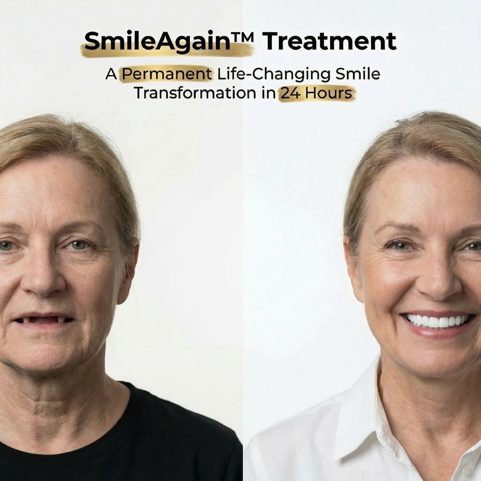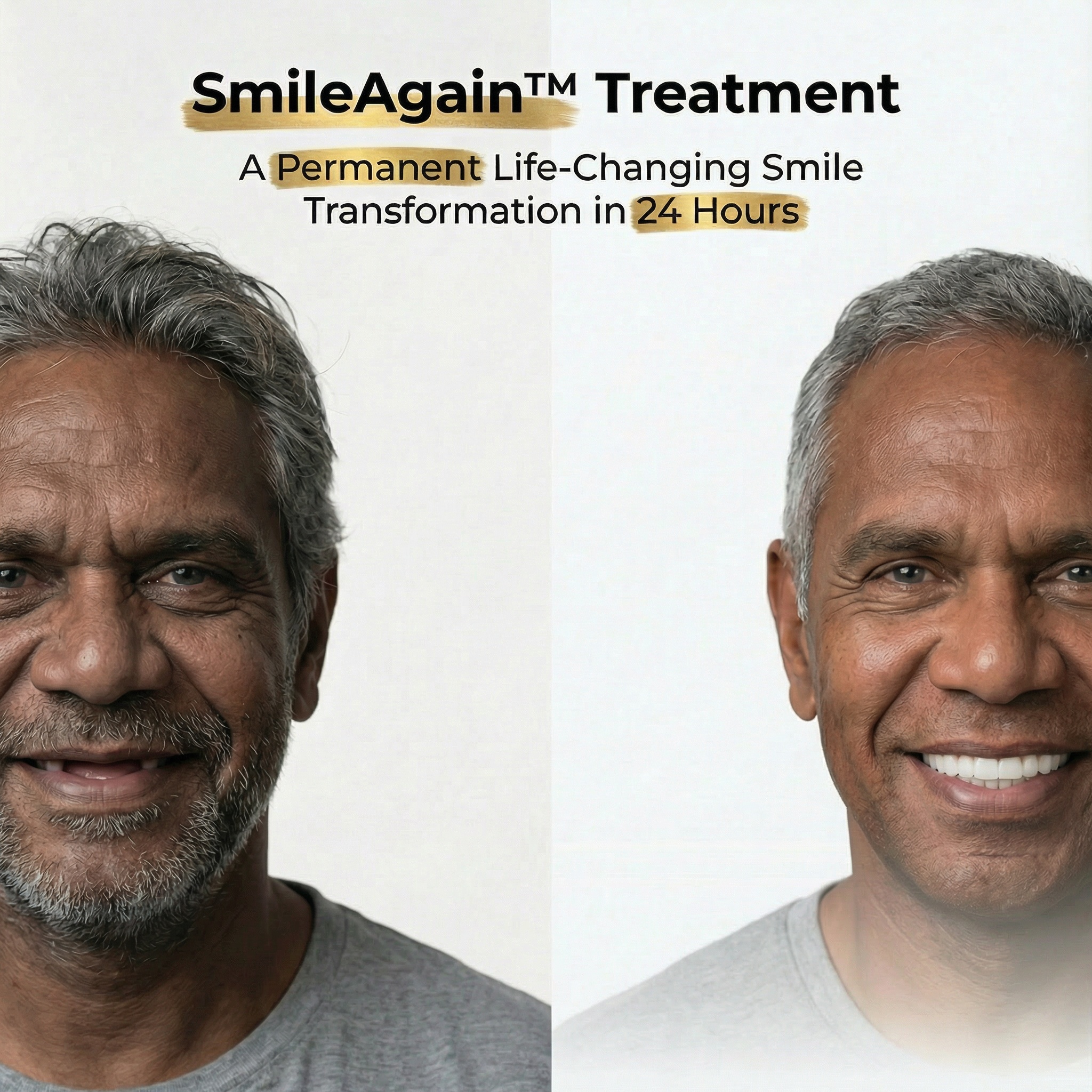 Australia’s trusted partner for full-mouth transformations, SmileAgain™ delivers world-class clinical expertise with a patient-first approach. Get a permanent, natural-looking smile designed to feel like yours within 24 Hours.